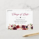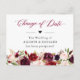 Modèle d'annonce de report d'événement - Carte de report de date de mariage Floral Rustique Bourguignon Rouge Fardé.