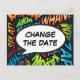 Personnalisez avec vos noms et détails pour annoncer le changement de date de votre événement spécial. Thème de pop art de bande dessinée moderne, design rétro amusant, parfait pour les mariages, les douches de mariée, les douches de bébé, les baptêmes, les fêtes de fiançailles, les célébrations d'anniversaire, les remises de diplômes, les fêtes d'anniversaire et autres événements spéciaux tout au long de l'année ! Un design cool, tendance et amusant qui met le boum zap pow dans votre journée. Conçu par Thisisnotme©