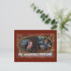 Un homme jouant du banjo à l'intérieur d'un cabine en rondins pour un homme et une femme au coucher du soleil dans une carte postale romantique vintage de 1912.