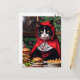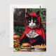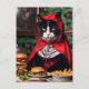Carte Postale Chat à capuchon rouge Mange Cheesburger et Fries