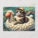 Carte Postale Chat adorable avec sur le mouton Floatie