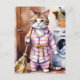 Carte Postale Chat adorable en pyjama Faire la blanchisserie Drô