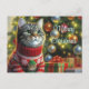 Carte Postale Chat Amoureux des chats mignon par sapin de Noël