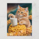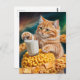 Carte Postale Chat au gingembre mignonne avec du lait dans l'esp