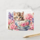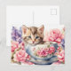 Carte Postale Chat au lavis dans une tasse de thé avec des fleur