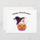 Carte Postale Chat avec casquette sorcier à Halloween Jack-O-Lan