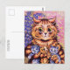 Une carte postale d'art raffiné avec une illustration animale de l'artiste anglais Louis Wain (1860-1939), plus connu pour ses portraits de chat Cette illustration particulière présente une mère chatte surprise au gingembre tenant trois chatons, dont deux bleus, posés contre un arrière - plan de papier peint.