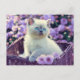 Carte Postale Chat Bébé Bleu Oiseau Chat Dans Panier Fleurs Lila