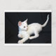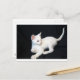 Un chat blanc ludique avec arrière - plan noir fournit une excellente image de plaisir neutre pour le genre à mettre sur votre produit préféré.