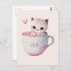 Carte Postale Chat blanc-rose mignonne dans une tasse de thé (4)