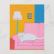 Carte Postale Chat blanc sur un canapé rose