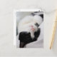 Carte postale - Image très mignonne d'un petit tomcat dormant sur le dos et montrant son mignon visage de chat mou avec des yeux de chat endormis et un nez de chat très doux. Chat noir et blanc, endormi.