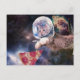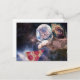Carte Postale Chat d'astronaute chassant une tranche de pizza