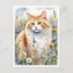 Carte Postale Chat de gingembre dans une prairie Fleur sauvage
