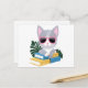 Carte Postale Chat de livre mignon avec lunettes roses - Kawaii