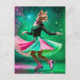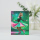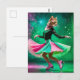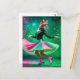 Carte Postale Chat de patinage sur glace adorable en rose et ver