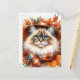 La carte postale est ornée d'un adorable chat poupée de chiffon portant foulard et casquette, entouré de feuilles d'automne et décoré. Un joli portrait d'aquarelle de félin à coeur d'automne d'un chaton laineux aux yeux bleus. Idéal pour les amoureux de les chats, les mamans de chat et les papas de chat.