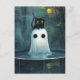 Carte Postale Chat d'Halloween et fantôme dans la piscine