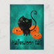 Carte Postale Chat d'Halloween mignon avec citrouilles
