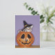 Carte Postale Chat en casquette sorcier à l'intérieur du citroui