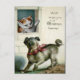 Carte postale de Noël victorienne Chat et Chien. Image victorienne vintage restaurée sur mesure et de haute qualité.