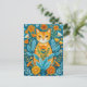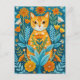 Carte Postale Chat et fleurs style d'art populaire orange et ble