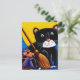 halloween est ici avec ce chat noir et souris avec un balai de sorcières.