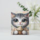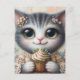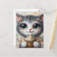 Carte Postale Chat Gris Avec un Cupcake