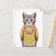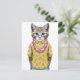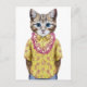 This design objets a portrait of cat in a summer shirt and hawaiian lei.