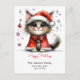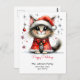 Chat mignon fantaisiste portant un chapeau de Père Noël sur une carte postale. Texte modifiable. Graphisme assisté par IA acheté avec utilisation commerciale. Œuvre : RedHeronLighthouse