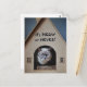 La carte postale présente l'image d'un chat sérieux portant des lunettes noires tout en regardant à l'extérieur de la maison. Le texte indique "C'est MIAOU ou Jamais !"