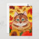 Carte Postale Chat mignonne Automne Panier d'automne Citrouille
