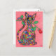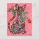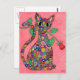 Cette belle chatte est assise contre un arrière - plan rose doux, montrant ses marques complexes et inhabituelles, semblables à celles que l'on retrouve sur les perles millefiori et le verre. Dans sa bouche, elle tient une seule rose rouge, dans ce design unique, stimulant et très détaillé.