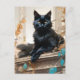 Chat noir généré par l'IA assis sur le rebord d'un bâtiment