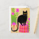 Un adorable chat noir sur une table en plaid rose avec des plantes ménagères L'art généré par l'IA