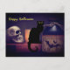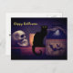 Carte Postale Chat noir effrayant et crâne Halloween heureux