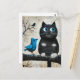 Carte Postale Chat noir effrayé et oiseau bleu sur une branche