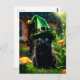 Carte Postale Chat noir en vert St. Patrick's Day sorch Casquett