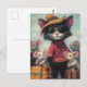 Un mignon chat en bois généré par l'IA et un groupe de petites souris avec valises sur un imaginaire de vacances art
