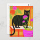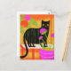 Carte Postale Chat noir mignon avec des rayures vertes dans les