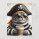Carte Postale Chat pirate en pull fuzzé avec un café