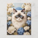 Carte Postale Chat Ragdoll Avec Fleurs Bleues D'Hydrangée