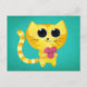 Carte Postale Chat romantique mignonne avec coeur souriant