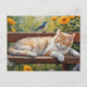 Carte Postale Chat se reposant sur le banc dans le jardin d'été