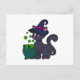Carte Postale Chat sorcière avec chaudron