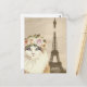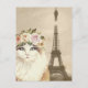 Vintage teinte sépia photo arrière - plan de la Tour Eiffel avec couverture de belle aquarelle chatte fantaisie à couronne florale