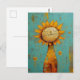 Carte Postale Chat Tournesol Mignonne S'Amuser Dans La Peinture