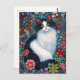 Carte Postale Chat Whimsical Tuxedo avec Fleur sauvage