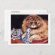 Carte postale d'art avec portrait animal de deux chats de Louis Wain (1860-1939) artiste anglais. Un chat gris et un chaton orange aux cheveux longs assis à côté d'un chat en porcelaine avec des expressions humoristiques.