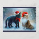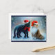 Un chat trop festif est prêt pour l'hiver arrière - plan de neige avec chapeaux de Père Noël et foulard.